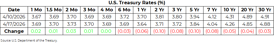 U.S. Treasury Rates Weekly Update for April 17, 2026