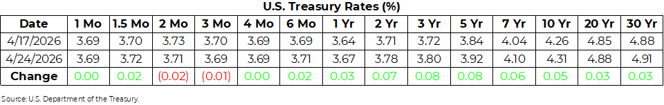 U.S. Treasury Rates Weekly Update for April 24, 2026