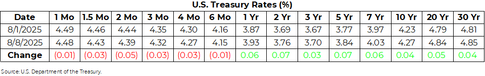 U.S. Treasury Rates Weekly Update for August 8, 2025