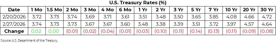 U.S. Treasury Rates Weekly Update for February 27, 2026
