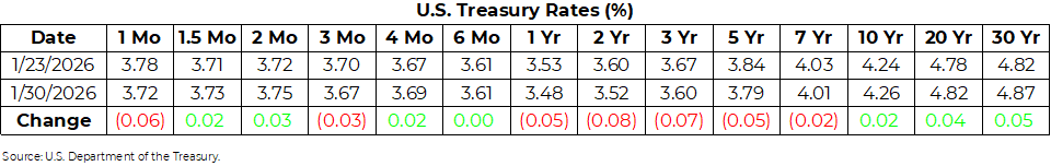 U.S. Treasury Rates Weekly Update for January 30, 2026