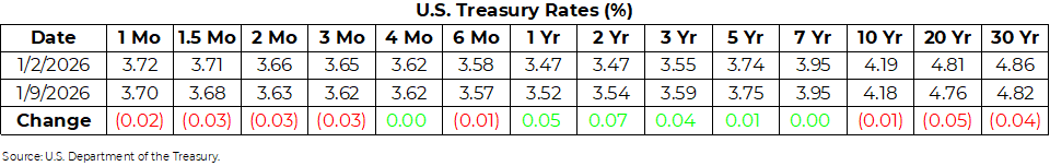 U.S. Treasury Rates Weekly Update for January 9, 2026