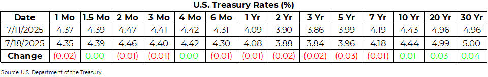 U.S. Treasury Rates Weekly Update for July 18, 2025
