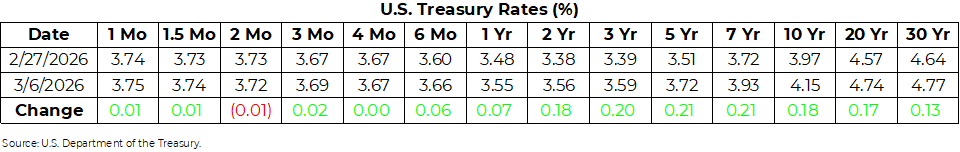U.S. Treasury Rates Weekly Update for March 6, 2026