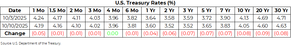 U.S. Treasury Rates Weekly Update for October 10, 2025