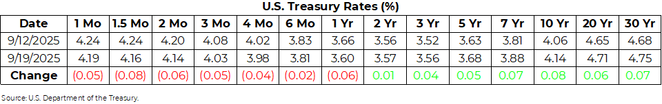 U.S. Treasury Rates Weekly Update for September 19, 2025